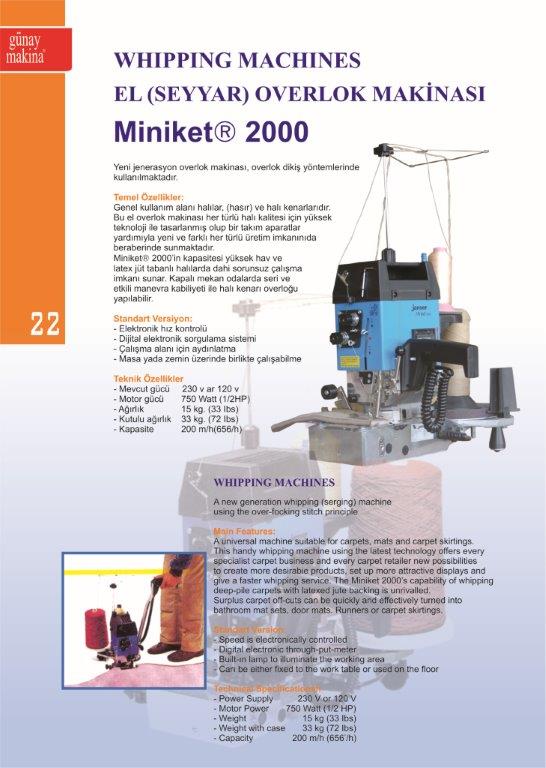 Genel kullanım alanı camii, otel ve döşeme halılardır. Bu seyyar overlok makinesi her türlü halı kalitesi için yüksek teknoloji ile tasarlanmış olup bir takım aparatlar yardımıyla en, ve farklı her türlü üretim imkanınıda beraberinde sunmaktadır.